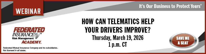 FEDERATED INSURANCE® SPONSORED WEBINAR | How Can Telematics Help Your Drivers Improve? | Thursday, March 19, 2026 | 1:00 PM